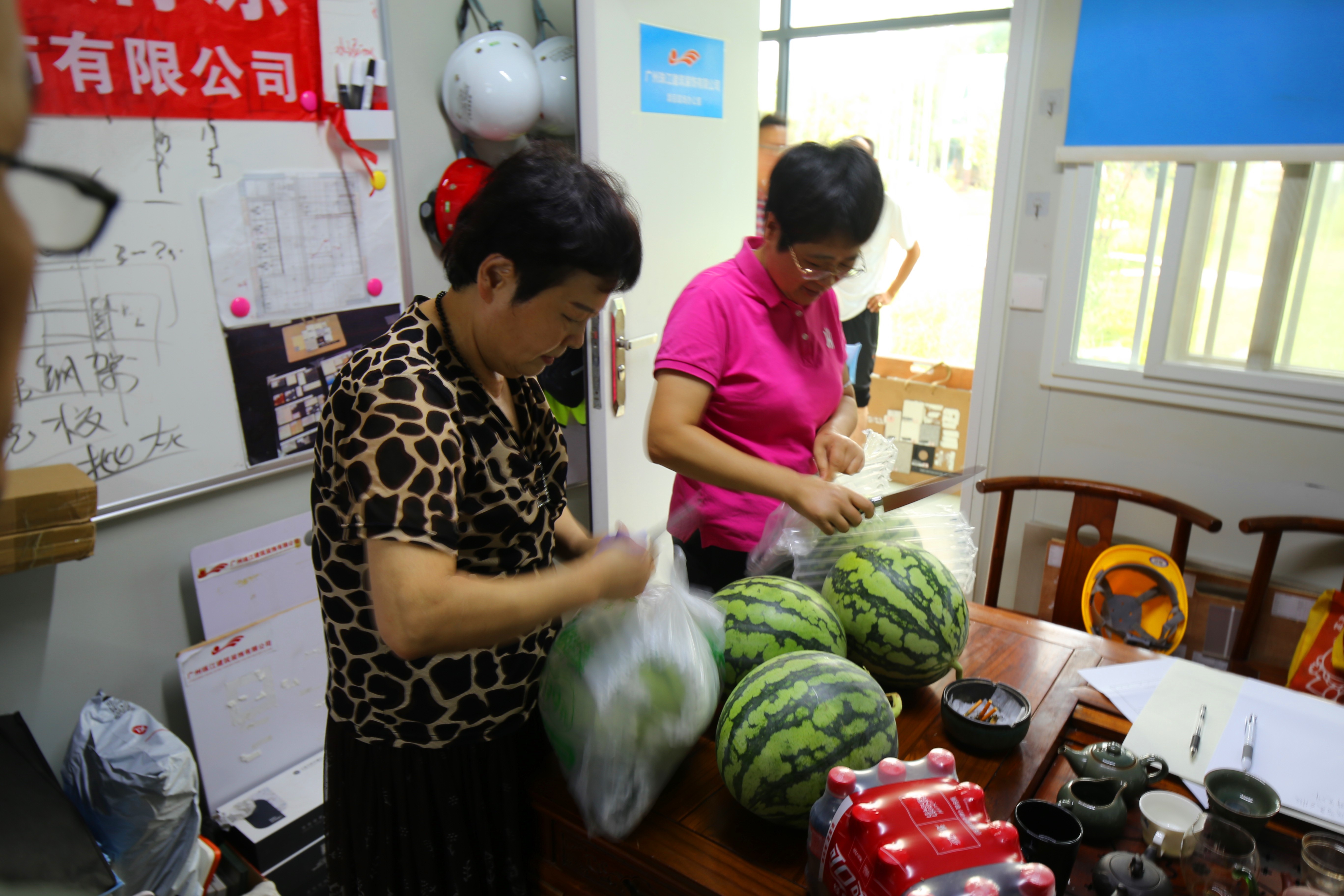 在项目现场,公司领导为一线员工发放了西瓜和饮料,与项目部负责人详细了解了工程进展、施工质量、安全生产特别是一线施工人员工作环境等方面情况,叮嘱一线施工人员要保证人身安全。在注重工程推进速度和质量的同时,合理安排休息时间,改善高温天气作业环境,切实做好高温天气环境下人员安全防护工作,确保施工一线人员的平安健康。